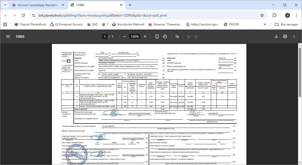 После этого откроется универсальный передаточный документ за выбранный период. Теперь вы можете скачать его или отправить на печать.