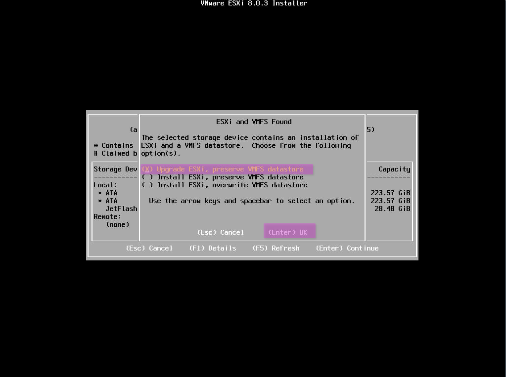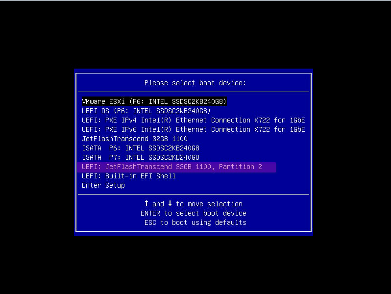 1. Загрузитесь с предыдущей версии ESXi (при двойной загрузке)