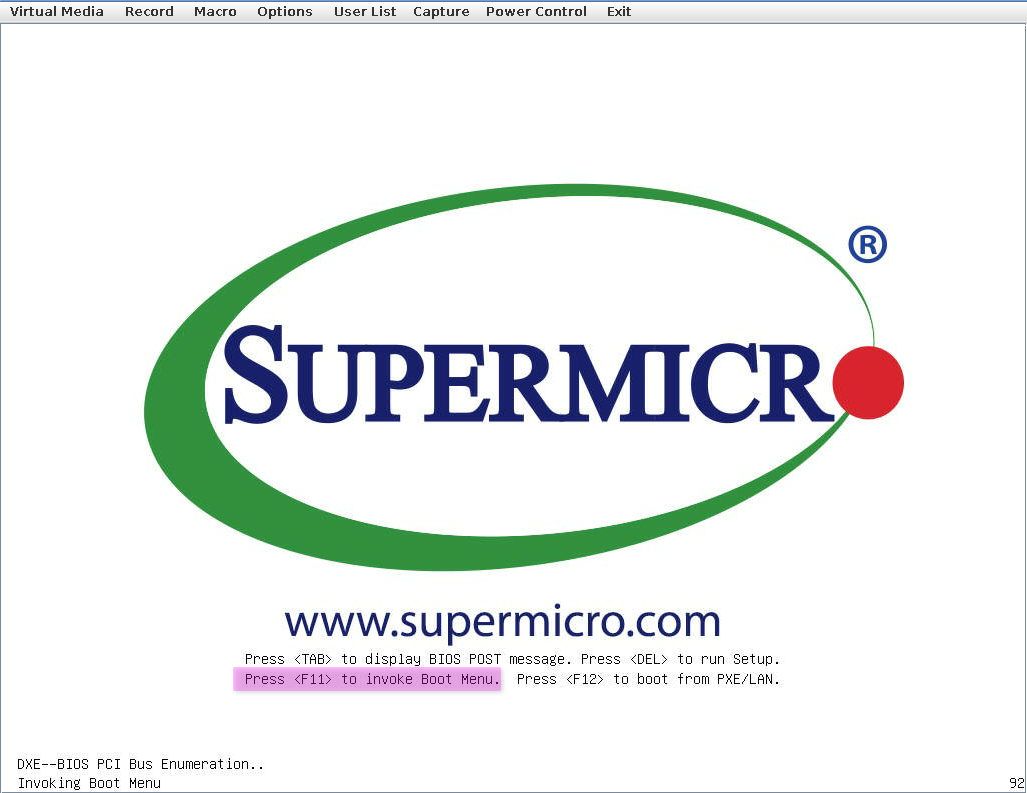• При загрузке сервера нажать F11 (или другую клавишу в зависимости от производителя):