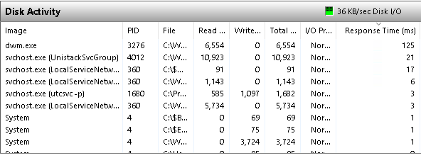 - Диагностика: в Resource Monitor — вкладка «Диск» (Disk), столбцы «Всего (Б/с)» (Total B/sec) и «Время ответа» (Responce time).