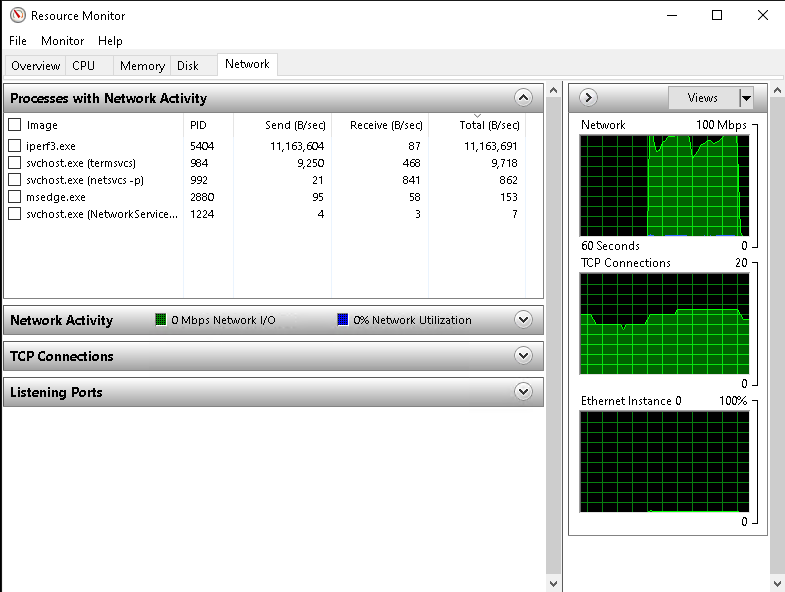 - Диагностика: Resource Monitor — вкладка «Сеть» (Network), столбцы «Отправлено» (Sent) и «Получено» (Received).