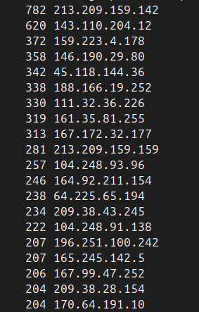 Пример вывода grep "Failed password" /var/log/auth.log | awk '{print $11}' | sort | uniq -c | sort -nr | head -20: