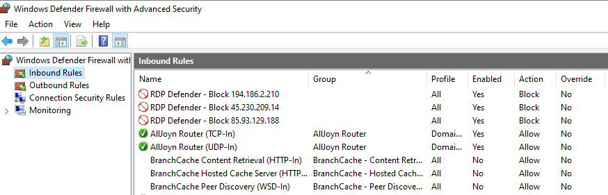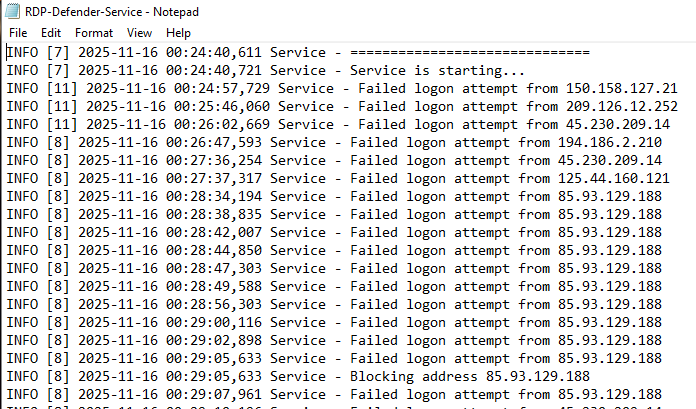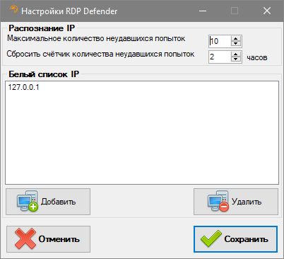 RDP Defender - это лёгкая утилита для защиты сервера Windows от подбора паролей по протоколу RDP. Программа автоматически блокирует IP-адреса, которые совершают слишком много неудачных попыток входа за короткий промежуток времени.