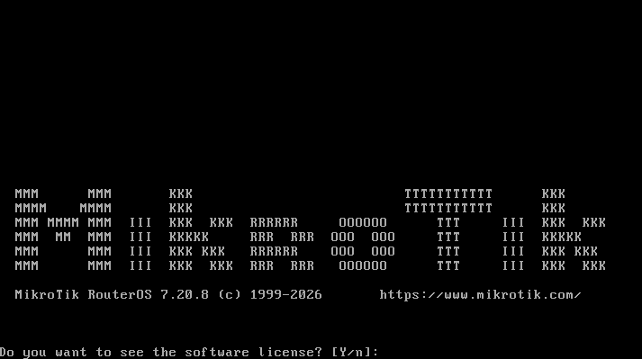 SSH-соединение прервётся. Сервер загрузится под управлением RouterOS CHR.