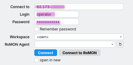 - Connect To: Введите IP-адрес вашего виртуального сервера.