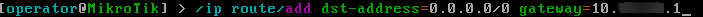 /ip route add dst-address=0.0.0.0/0 gateway=10.X.X.1
