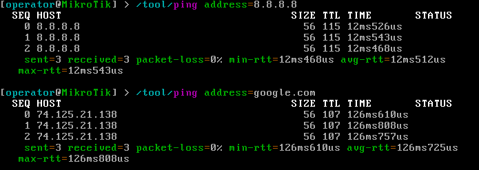 Если пинги успешны — сеть настроена корректно, и вы можете подключаться к роутеру удалённо.